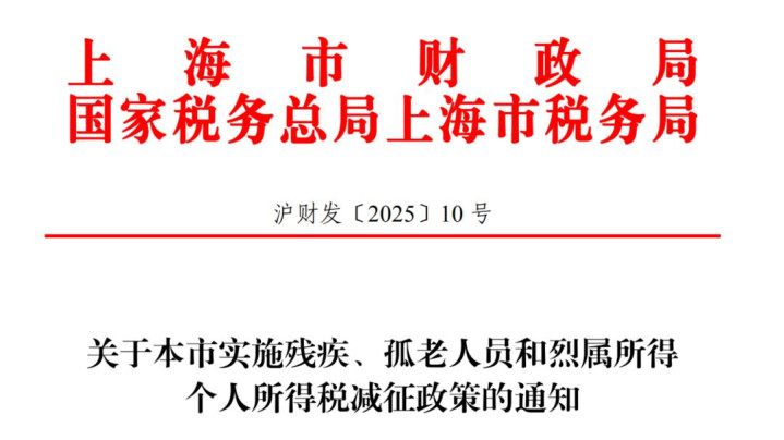 12月30日,上海市税务局发布《对于本市实施残疾、孤老东谈主员和烈属所得个东谈主所得税减设备略的告知》。