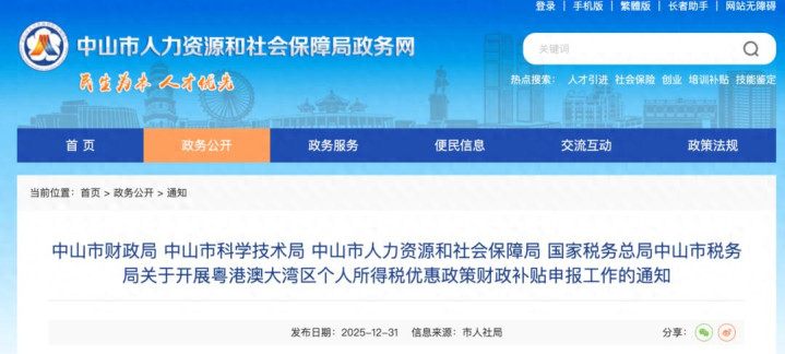 12月31日,广东中山印发《中山市实施粤港澳大湾区个东谈主所得税优惠战略财政补贴处置主见>的告知》