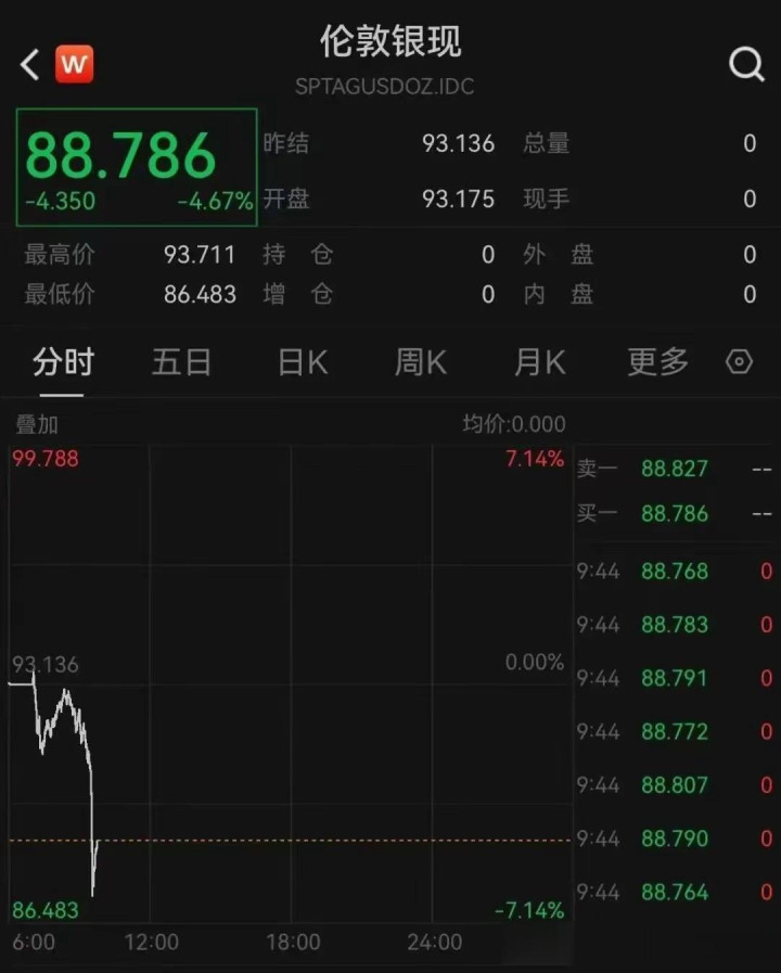 2026年1月15日,全球投资者的眼神被贵金属市集紧紧收拢。就在前一日,现货白银刚刚以暴涨超6%、冲突每盎司93好意思元的姿态刷新历史记载。然而市集热枕在24小时内发生戏剧性逆转,15日早盘,现货白银直线跳水,跌幅一度扩大至7%,跌破88好意思元;现货黄金也失守4600好意思元关隘。